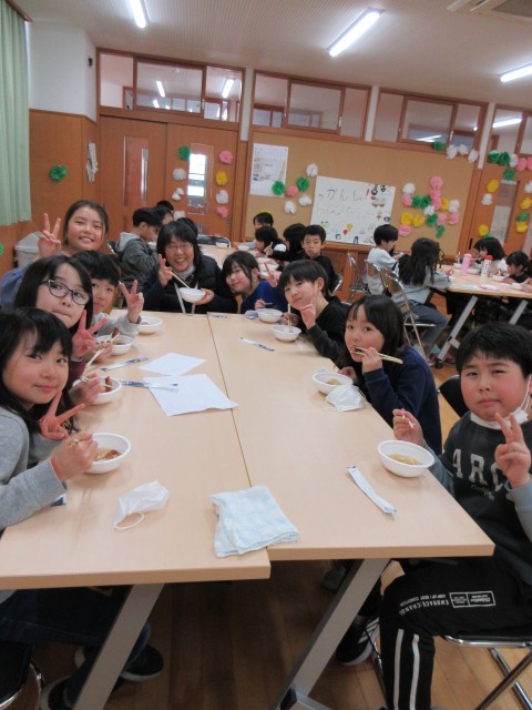 2月13日 3年生がお世話になったボランティアさんを招待して、感謝のおでんパーティーを開催しました。朝から、おでんの準備を行いました。大根の皮をむいて切ったり、津南ポークのソーセージを入れたり、花飾りやウエルカムボードも準備しました。