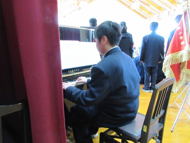 1部、卒業証書を手渡すときの人一人の表情から、小学校を旅立つ決意や中学校への意気込みが伝わってきました。私は、この段階で既に感極まってました…。2部は、保護者の方々をステージ前の卒業生の席にご案内しての呼びかけ。保護者の方とお子さんが目と目で通じ合い、互いに感動している様子が伝わってきました。卒業生の合唱はまさに感動の嵐。職員席に目を向けると先生方が一様に涙しているのを見て、私の涙腺も崩壊してしまいました。本当に素敵な卒業式となりました。