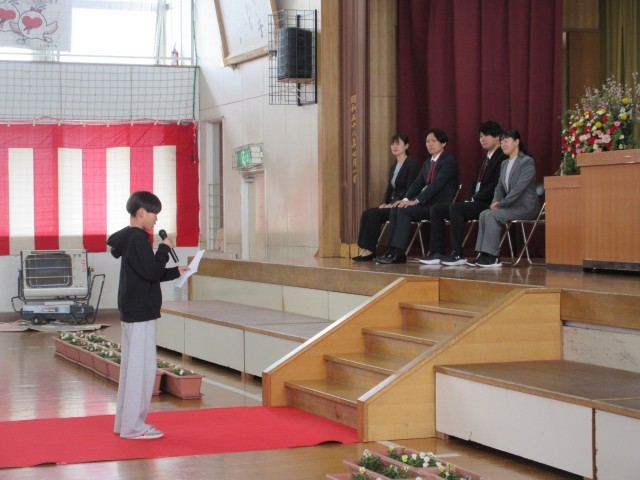 8名の先生方とお別れです。先生方からお話をいただきました。それぞれの先生が津南小学校を愛し、子どもたちを愛してくださっていたことがよく分かりました。代表児童のお別れの挨拶には、とても感動しました。先生方への感謝の思いや今後の自分の成長への決意が語られ、涙があふれました。離任式の後には、クラス替えのある4年生と2年生に新しいクラス編成が発表されました。