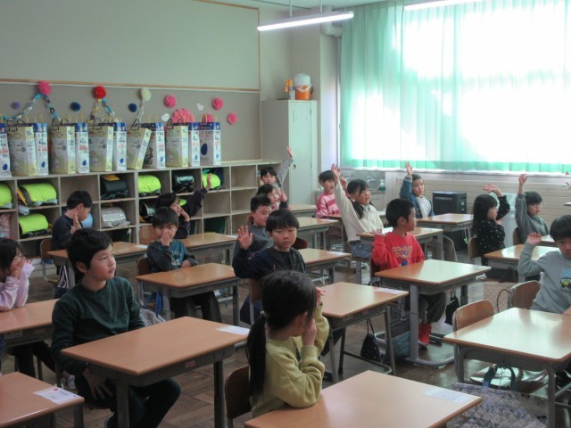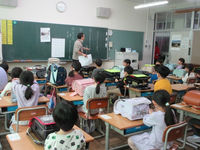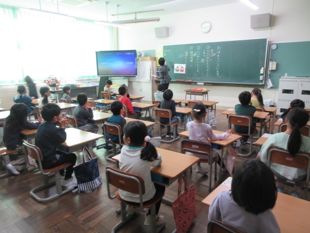 みんな、きちんと座って担任の説明を聞きながら作業をしていました。どちらの学級も落ち着いた雰囲気でスタートすることができました。
