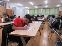 トレセンや稲刈り、スポ少など、これまでの学校や日常の生活経験を思い出しながら、思い出の場面を絵画に表しています。5年生になると、奥行きや動きのある感じなども表現しようと集中している様子でした。