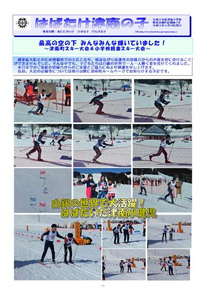 晴天の下で開催された津南町スキー大会。感染拡大防止のために無観客での大会となりましたが、子どもたちは一生懸命滑りました。一人一人の輝く笑顔があふれた競技会でした。本日までのご家庭のご理解とご支援に感謝申し上げます。ありがとうございました。