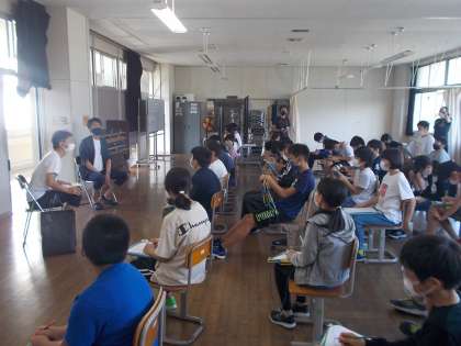 9月15日、松海寿司の桑原亮さんを講師にお招きし、「生き方」に関わる講話をいただきました。「嫌なことは先に終わらせています。どうせやらなくてはいけないことは、早く終わらせて、褒められた方が良いですよ」など、子どもたちの心に残るお話をいただきました。