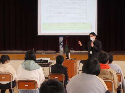 学校薬剤師の粉川英明先生をお招きし、薬物乱用防止教室を実施しました。薬物による健康被害等について画像を交えながら教えていただき、薬物に対する危険性、怖さを学びました。