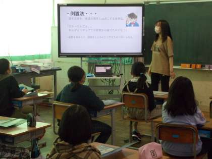 国語で詩の学習を行いました。昨年度かICT機器等の積極的な活用を試行してきました。ここでも、自作のスライド資料を電子黒板で提示し、子どもたちの興味や関心を引きつけていました。5年生に進級した子どもたちですが、しっかりと聞こうとする姿勢が多く素晴らしいですね。
