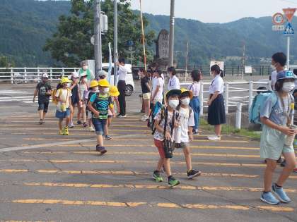 夏休み前、最後のあいさつ運動です。暑い日でしたが、中学生や児童会総務委員だけでなく、地域の皆さんも参加し、あいさつ運動を行いました。
