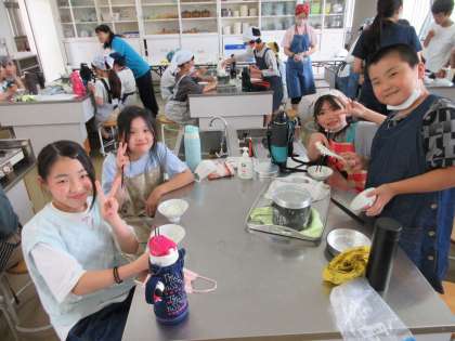 米作りが始まった5年生です。来月、6月はJRCトレーニングセンターが待っています。この日は先行して、飯ごうを使った炊飯に挑戦です。うまく炊けたご飯に喜びいっぱいの表情でした。