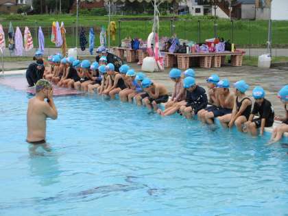 1年生にとって、初めての小学校でのプール授業です。今年はTapに依頼して、専門の指導者・コーチをお願いしました。コーチの指導の下、1年生は楽しそうに水に親しむことができました。