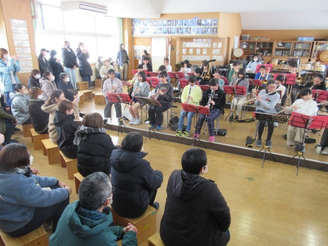 2月21日、音楽サークル「ウィンターコンサート」 公開日 2025/02/25 更新日 2025/02/26 学校日記 今年度のサークル活動最終日、音楽サークルのウィンターコンサートを行いました。練習時間は十分とは言えませんが、これまで取り組んできた練習の成果を楽曲にのせて発表しました。希望の保護者からも参観いただき、温かい拍手を頂戴しました。子どもたちにとって、貴重な発表の場となりました。ありがとうございました。 +5 サークル・課外活動