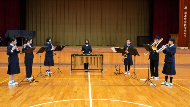 今年は、吹奏楽1、2年生が、管楽打楽器7重奏のAチーム、8重奏のBチームの2チームに分かれて出場します。