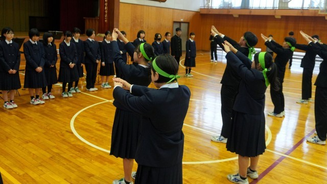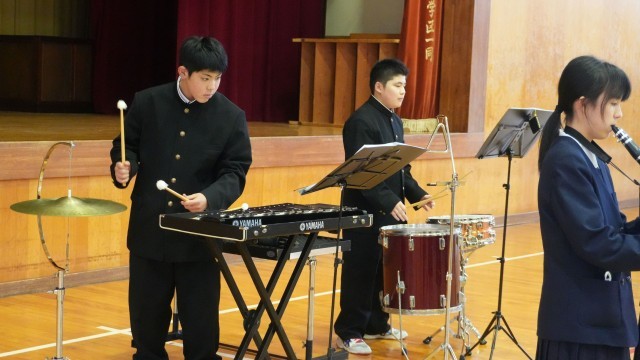 激励会では、全校生徒の前で、それぞれのチームがコンテストで演奏する曲を披露しました。