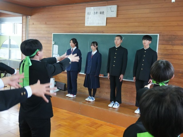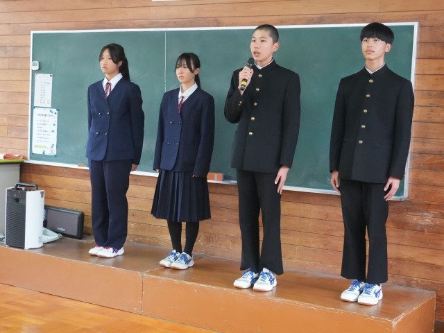 12月24日(水)、Ⅲ期終了式に続けて、スキー大会の激励会を行いました。