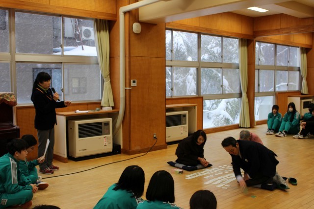 雪の降りしきる中でしたが、地域の方から来校していただき、交流会は大いに盛り上がりました。