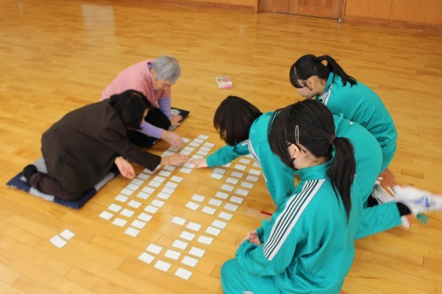 当日は、地域の百人一首に親しんでおられる方々にもお越しいただき、デモンストレーションや生徒との交流をしていただきました。